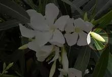 白花夹竹桃是夹竹桃科、夹竹桃属植物夹竹桃的栽培品种。常绿直立大灌木,枝条灰绿色;嫩枝条具稜,被微毛,老时毛脱落。叶3-4枚轮生,下枝为对生,叶面深绿,叶背浅绿色;侧脉纤细平行与中脉成直角;叶柄扁平,…全部>>