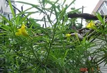 黄花夹竹桃K. Schum.),又名“酒杯花”“柳木子”“黄花状元竹”,是夹竹桃科,黄花夹竹桃属下的常绿乔木植物。高达5m,全株无毛,树皮棕褐色;叶互生,近革质,线形或线状披针形;花大,黄色,具香味,…全部>>