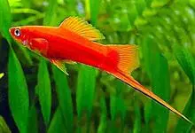 红箭鱼(红剑、剑鱼)鳉形目 > 花鳉科 > 剑尾鱼属 > 红箭鱼