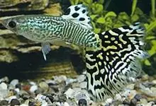 孔雀鱼,是鳉形目花鳉科花鳉属鱼类。孔雀鱼体形修长,其形态变化主要在尾鳍,常见的尾鳍形态有圆尾、尖尾、铲尾等。雌、雄鱼差别明显,雄鱼的大小只有雌鱼的一半左右,雄鱼体色丰富多彩,尾部形状千姿百态。…全部>>