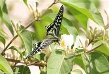 柑橘凤蝶是鳞翅目凤蝶科凤蝶属昆虫,又称柑橘黄凤蝶、花椒凤蝶、燕凤蝶。中型凤蝶。翅底色黑褐色,翅脉黑色,各翅室内具长短不一的黄白色斑;前翅中室具4条近乎平行的黄色线纹,后翅臀区具一枚橘红色的圆斑,…全部>>