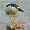 夜鹭是中型涉禽,体长46-60厘米。体较粗胖,颈较短;嘴尖细,微向下曲,黑色;胫裸出部分较少,脚和趾黄色;头顶至背黑绿色而具金属光泽;上体余部灰色;下体白色;枕部披有2-3枚长带状白色饰羽,下垂至背上,…全部>>
