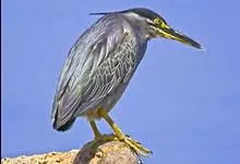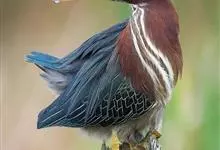 绿鹭:是鹳形目鹭科绿鹭属鸟类。体型小,头顶黑,枕冠亦黑色,上体蝉灰绿色,下体两侧银灰色;前额至后枕及冠羽墨绿色,眼后有一白斑,颊纹黑色;颚纹白色,后颈、颈侧和体侧烟灰色;背部披灰绿色矛状长羽,…全部>>