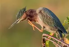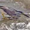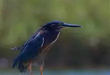 绿鹭:是鹳形目鹭科绿鹭属鸟类。体型小,头顶黑,枕冠亦黑色,上体蝉灰绿色,下体两侧银灰色;前额至后枕及冠羽墨绿色,眼后有一白斑,颊纹黑色;颚纹白色,后颈、颈侧和体侧烟灰色;背部披灰绿色矛状长羽,…全部>>