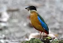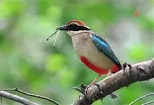 蓝翅八色鸫是雀形目八色鸫科的鸟类。体长17-20厘米,体重类约48-70克,体型圆胖,尾短,腿长,以身体具有红、绿、蓝、白、黑、黄、褐、栗等鲜艳夺目,丰富艳丽的色彩而得名,是很有观赏价值的鸟类。主要…全部>>