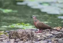珠颈斑鸠,别名花斑鸠、珍珠鸠、花脖斑鸠、鸪鹪,是鸠鸽科副斑鸠属鸟类。体型中等,体长27~34cm,体重120~205g,雌鸟和雄鸟羽色相似,但雌鸟不如雄鸟羽色亮泽。珠颈斑鸠前额至头顶羽色稍淡,…全部>>