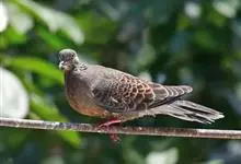 珠颈斑鸠,别名花斑鸠、珍珠鸠、花脖斑鸠、鸪鹪,是鸠鸽科副斑鸠属鸟类。体型中等,体长27~34cm,体重120~205g,雌鸟和雄鸟羽色相似,但雌鸟不如雄鸟羽色亮泽。珠颈斑鸠前额至头顶羽色稍淡,…全部>>