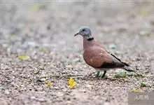 棕斑鸠,是鸽形目鸠鸽科斑鸠属鸟类。整个头和颈淡粉红色,头顶和前额较暗,颊、喉较淡,前颈基部两侧羽毛黑色具宽阔的棕色端斑,使前颈两侧形成黑色斑点状的黑斑。…全部>>