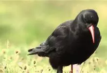 红嘴山鸦,是脊索动物门鸟纲雀形目鸦科鸟类。红嘴山鸦的成鸟通体羽毛纯黑色具有蓝色金属光泽,翼和尾泛有蓝绿色金属光泽;虹膜暗褐色,喙较为尖细,并且呈镰状下弯,喙和脚朱红色。…全部>>