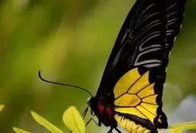 金裳凤蝶是凤蝶科、裳凤蝶属的动物。金裳凤蝶身体呈黑色,头、颈和胸侧有红毛,腹部有黑黄两色相间条纹,雄蝶前翅黑色,具黑天鹅绒光泽,各脉两侧灰白色,后翅金黄色,各室外缘有等腰三角形黑斑1枚,斑内侧有晕,…全部>>