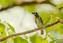 金喉拟啄木鸟,是须鴷科、拟啄木鸟属的鸟类。金喉拟啄木鸟为小型鸟类,体长19-24厘米。额深红色,头顶金黄色,后枕具一大块深红色斑,耳羽和头侧银灰色,上体草绿色,颏和上喉金黄色,下喉淡银灰色,…全部>>