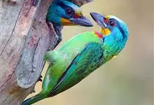 蓝喉拟啄木鸟,是须鴷科、拟啄木鸟属的鸟类。蓝喉拟啄木鸟为小型鸟类,体长20-23厘米。前额至头顶鲜红色,其上有一宽阔的黑色横带,将此红色分为前后二块;头侧、颏、喉蓝色,下喉两侧各具一红色点斑。…全部>>