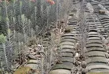 棒叶落地生根是景天科、落地生根属植物。茎直立、粉褐色。叶圆棒形,上表面有沟、粉色,有红褐斑。叶片交互对生,交叉排列成十字形。叶端锯齿上长有很小的幼株、落地后即可生根成活。原产非洲马达加斯加。…全部>>