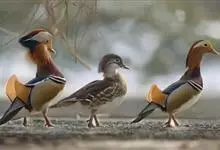 鸳鸯是鸭科鸳鸯属动物。鸳鸯体长约44.5厘米 ;头、背呈灰褐色;颊、嘴基、喉白色,上体余部橄榄褐色,尾部转暗褐色;胸侧与两胁棕褐色;腹部与尾下覆羽白色;雌雄异色。鸳鸯又名匹鸟;因其雌雄不分离,…全部>>