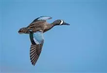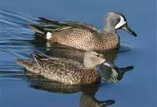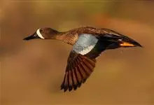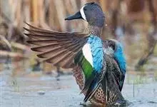 蓝翅鸭是雁形目、鸭科的鸟类。身长37-41 cm,头部灰色,眼圈、眼纹和眼先均灰白色。体羽红褐色,羽毛有白色镶边。侧翼有深蓝色翼镜标记。栖息于淡水湖畔,亦有些越冬活动于沿海滩涂盐场、水库、湖池、河流,…全部>>