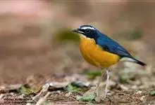 栗腹歌鸲是鹟科、歌鸲属小型鸟类,体长12-14厘米。雄鸟前额和头侧黑色,一条长而显著的白色眉纹在黑色的头部极为醒目,头顶至尾等其余上体灰蓝色,下体栗棕色或栗色。雌鸟上体橄榄褐色,下体白色沾赭棕色。…全部>>
