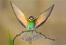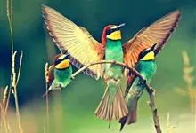 蓝颊蜂虎:是蜂虎科、蜂虎属的鸟类,共有2个亚种。体长27-33厘米,翼展46-49厘米,体重38-50克。嘴形细长而下弯,先端尖,…全部>>
