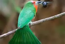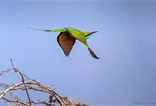 绿喉蜂虎是佛法僧目、蜂虎科的小型鸟类,共有9个亚种。身长22-25厘米,翼展29-30厘米,体重15-20克。喉绿色,额部、头顶至上背为锈红色,其余上体均为亮绿色。中央尾羽延长且端段狭细,…全部>>