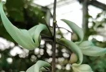 翡翠葛是豆科翡翠葛属植物,多年生常绿大型藤本,茎木质,直径可达30厘米,长可达21.3米。三出复叶,革质光亮,小叶长椭圆形,长7.6-12.7厘米,中间小叶最长。花两性,春季至初夏开花,蓝绿色,…全部>>