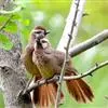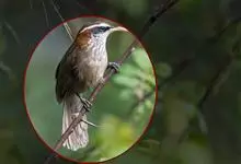白颊噪鹛是雀形目噪鹛科噪鹛属鸟类,又称土画眉、小画眉、小噪鹃。成鸟额至头顶栗褐色,长眉纹、眼先和颊纹棕白色,眼后至耳羽深褐色,…全部>>