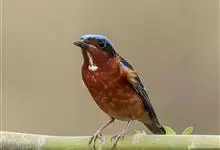 蓝头矶鸫为鹟科矶鸫属的鸟类,是一种候鸟,俗名臭皮翠、白喉叽鸫、白喉石鸫、葫芦翠、虎皮翠。全长19厘米。自额至后颈及翅上的小覆羽均钴蓝色。腰和尾上覆羽浓栗。内侧飞羽有一白色块斑。喉部中央有一大型白斑。…全部>>