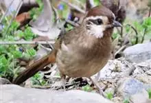 白颊噪鹛是雀形目噪鹛科噪鹛属鸟类,又称土画眉、小画眉、小噪鹃。成鸟额至头顶栗褐色,长眉纹、眼先和颊纹棕白色,眼后至耳羽深褐色,…全部>>