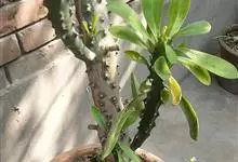金刚纂,是大戟科大戟属的肉质灌木状小乔木。茎圆柱状,上部多分枝,叶片互生,少而稀疏,顶端钝圆,基部渐狭;花序二歧状腋生,苞叶膜质,总苞阔钟状,裂片半圆形,边缘具缘毛,雄花多枚;花期6-9月。…全部>>