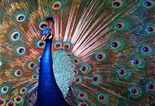 蓝孔雀,是鸡形目雉科孔雀属中的一种鸟。蓝孔雀是鸡类中的“巨人”,雄鸟和雌鸟的羽色有差,雄鸟头上具冠羽,头、颈和胸部均为蓝色,尾羽并不长,构成尾屏的尾上覆羽可达身长的2倍,平时合拢托在身后,…全部>>