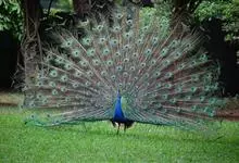 绿孔雀是鸡形目雉科孔雀属鸟类,别名:孔雀、越鸟、爪哇绿孔雀。雄性绿孔雀全身呈翠绿色,并反紫铜色光。头顶有一簇直立的冠羽,尾上复羽发达的约长1米,每羽端部有一个蓝色和翠绿色镶嵌的眼状斑,…全部>>