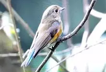 红胁蓝尾鸲俗名:蓝点冈子、蓝尾巴根子、蓝尾杰、蓝尾欧鸲。体型略小而喉白的鸲。特征为橘黄色两胁与白色腹部及臀成对比。雄鸟上体蓝色,眉纹白;亚成鸟及雌鸟褐色,尾蓝。…全部>>