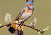 蓝点颏亦称“蓝喉歌鸲”,通称蓝靛颏儿。身体大小和麻雀相似,体长12-13厘米,体重17-18克。头部、上体主要为土褐色。眉纹白色。尾羽黑褐色,基部栗红色。颏部、喉部辉蓝色,下面有黑色横纹。下体白色。…全部>>