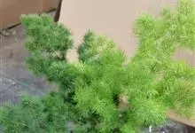 蓬莱松是天门冬科、天门冬属多年生丛生草本植物。宿存,圆柱形肉质根,纵截面为绿色和表面灰色。植株高可达3米。茎呈圆柱形或近四边形,底部木质化,具有灰色或灰褐色。幼嫩的茎在每个节上都被紫绿色鳞片包,…全部>>