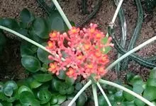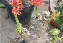 佛肚树是大戟科麻风树属的直立灌木。株高可达1.5米;茎基部或下部通常膨大呈瓶状;枝条粗短,具散生突起皮孔;叶盾状着生,近圆形或宽椭圆形,先端圆钝,基部平截或钝圆,托叶分裂呈刺状,宿存;花序顶生,…全部>>