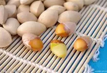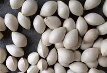 白果,又名鸭脚子、灵眼、佛指柑,银杏、公孙树子,是银杏的种仁。椭圆形,长1.5~2.5cm,宽1~2cm,厚约1cm。表面黄白色或淡黄棕色,平滑坚硬,一端稍尖,另端钝,边缘有2~3条棱线,中种皮质硬…全部>>