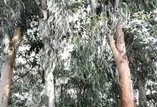 柠檬桉,又名“油加利树”“尤加利树”,是桃金娘科、桉属的常绿大乔木。树高28m,树皮光滑;幼态叶片披针形,有腺毛,基部圆形,叶柄盾状着生,成熟叶片狭披针形;圆锥花序腋生,花蕾长倒卵形;蒴果壶形,…全部>>