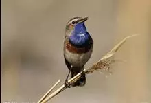 蓝点颏亦称“蓝喉歌鸲”,通称蓝靛颏儿。身体大小和麻雀相似,体长12-13厘米,体重17-18克。头部、上体主要为土褐色。眉纹白色。尾羽黑褐色,基部栗红色。颏部、喉部辉蓝色,下面有黑色横纹。下体白色。…全部>>