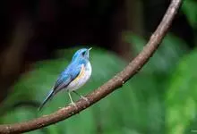 红胁蓝尾鸲俗名:蓝点冈子、蓝尾巴根子、蓝尾杰、蓝尾欧鸲。体型略小而喉白的鸲。特征为橘黄色两胁与白色腹部及臀成对比。雄鸟上体蓝色,眉纹白;亚成鸟及雌鸟褐色,尾蓝。…全部>>