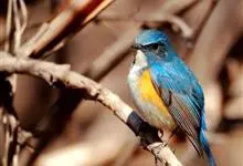 红胁蓝尾鸲俗名:蓝点冈子、蓝尾巴根子、蓝尾杰、蓝尾欧鸲。体型略小而喉白的鸲。特征为橘黄色两胁与白色腹部及臀成对比。雄鸟上体蓝色,眉纹白;亚成鸟及雌鸟褐色,尾蓝。…全部>>