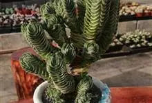 青锁龙是景天科、青锁龙属植物。多浆肉质亚灌木。株高30厘米左右。茎较细弱,且多分枝,整个植株成丛状,茎和分枝垂直向上生长。叶片鳞状呈三角形,叶小而密,在茎和枝上排列成4棱,非常紧密,以至难于与茎枝区分,…全部>>