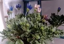蓝目菊别名非洲雏菊、大花蓝目菊。原产南非,不耐寒.忌炎热,适宜温度18℃~26℃,喜向阳环境。宜排水良好的土壤。菊科菊属多年生草本植物,…全部>>
