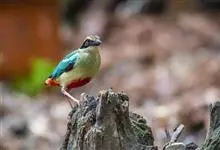 蓝翅八色鸫是雀形目八色鸫科的鸟类。体长17-20厘米,体重类约48-70克,体型圆胖,尾短,腿长,以身体具有红、绿、蓝、白、黑、黄、褐、栗等鲜艳夺目,丰富艳丽的色彩而得名,是很有观赏价值的鸟类。主要…全部>>