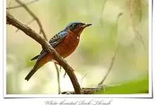 白喉矶鸫是鸫科、矶鸫属小型鸟类,体长17-18厘米。雄鸟头顶和翅上覆羽钴蓝色,背、两翅和尾黑色具白色翅斑,腰和下体栗色,喉白色。雌鸟上体橄榄褐色具黑色鳞状斑,两翅和尾灰褐色,头顶灰褐色,喉白色,…全部>>