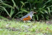 赤胸鸫是鸫科、鸫属中型鸟类,体长22-24厘米。整个头、颈和喉暗橄榄褐色或灰褐色,上体橄榄褐色。胸和两胁橙红色,腹以下白色。下嘴黄色,脚橙黄色具黄色眼圈。虹膜褐色,上嘴褐色,下嘴黄色,脚黄色。…全部>>