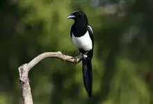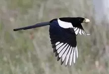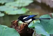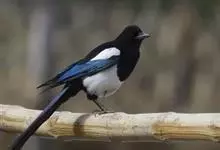 喜鹊:是鸦科、鹊属的一种鸟类。共有11个亚种。体长40-50厘米,雌雄羽色相似,头、颈、背至尾均为黑色,并自前往后分别呈现紫色、绿蓝色、绿色等光泽,双翅黑色而在翼肩有一大形白斑,尾远较翅长,呈楔形,…全部>>