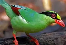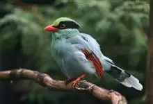 蓝绿鹊:中型鸟类,共有5个亚种。体长36-38厘米。尾长,嘴、脚红色。通体羽色主要为草绿色,宽阔的黑色贯眼纹向后延伸到后颈,在绿色的头侧极为醒目。两翅栗红色,内侧飞羽具黑色次端斑和白色尖端。尾绿色,…全部>>
