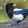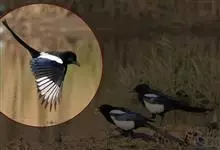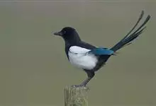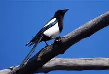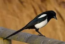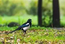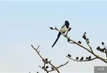 喜鹊:是鸦科、鹊属的一种鸟类。共有11个亚种。体长40-50厘米,雌雄羽色相似,头、颈、背至尾均为黑色,并自前往后分别呈现紫色、绿蓝色、绿色等光泽,双翅黑色而在翼肩有一大形白斑,尾远较翅长,呈楔形,…全部>>