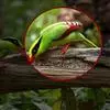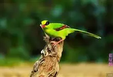 蓝绿鹊:中型鸟类,共有5个亚种。体长36-38厘米。尾长,嘴、脚红色。通体羽色主要为草绿色,宽阔的黑色贯眼纹向后延伸到后颈,在绿色的头侧极为醒目。两翅栗红色,内侧飞羽具黑色次端斑和白色尖端。尾绿色,…全部>>