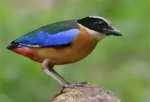 蓝翅八色鸫是雀形目八色鸫科的鸟类。体长17-20厘米,体重类约48-70克,体型圆胖,尾短,腿长,以身体具有红、绿、蓝、白、黑、黄、褐、栗等鲜艳夺目,丰富艳丽的色彩而得名,是很有观赏价值的鸟类。主要…全部>>