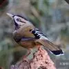 大噪鹛:中型鸟类,体长32-36厘米。额至头顶黑褐色,背栗褐色满杂以白色斑点,斑点前缘或四周还围有黑色。初级覆羽、大覆羽和初级飞羽具白色端斑。尾特长,均具黑色亚端斑和白色端斑。颏、喉棕褐色,…全部>>