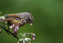 棕头雀鹛为鸦雀科,褐鹛属小型鸟类,体长10-13厘米。头顶栗褐色具黑色侧冠纹。上体茶黄色,飞羽外侧表面灰白色,内侧表面红棕色,内外二色之间夹有黑色。颏、喉白色具不明显的暗色纵纹,胸沾葡萄灰色,…全部>>